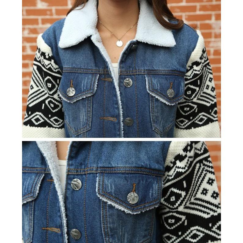 裏ボア Gジャン デニム レディース 長袖 エスニック柄 ニット袖 ドッキング Gジャン ニット アウター ブルゾン 裏ボアジ Hane99 X Clothesファッション通販 通販 Yahoo ショッピング